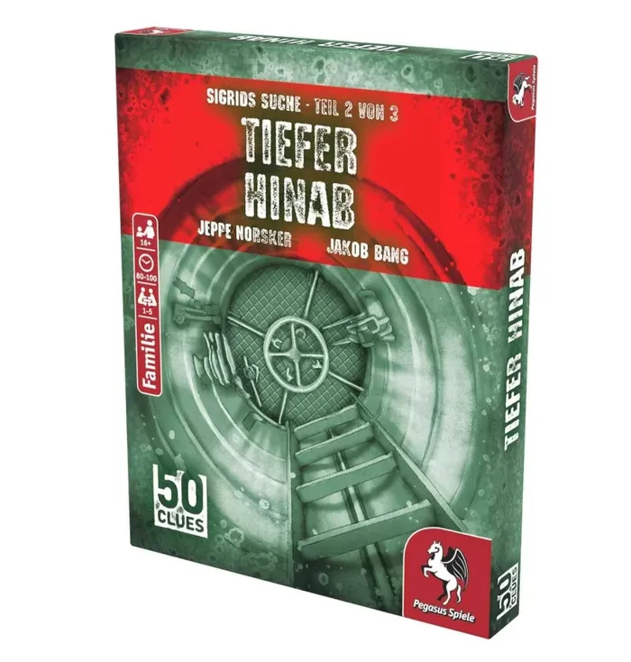 In 50 Clues – Tiefer hinab erleben die Spielenden den zweiten Teil der Geschichte: Die Situation ist noch schlimmer, als du je hättest ahnen können! Ein tödlicher und hochgradig ansteckender Pilzhybrid hat sich auf der Insel Bornholm verbreitet – ein biologisches Kampfmittel, das außer Kontrolle geraten ist. Du bist in einer unterirdischen Militäranlage, in der sich irgendwo die Forschungsdaten deiner Schwester befinden. Du musst sie rechtzeitig finden, sonst ist eine globale Katastrophe unausweichlich. Doch das mysteriöse Unternehmen GAIA hat andere Pläne. Schlüpfe eine zweites Mal in die Rolle von Sigrid und löse die Rätsel, die dich immer tiefer hinab führen.