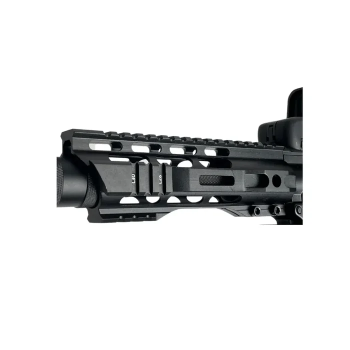 Mit holografischem Visier 553 und Magazinanschluss Mit zusätzlichem Magazin und dem berühmten L-Tech-Hinterschaft macht dieses Custom-Gewehr etwas Sportliches, Kraftvolles und absolut Dominantes auf dem Spielfeld.