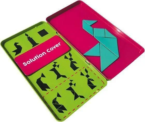Ein Klassiker unter den Denksportaufgaben. Es gilt, mit den 7 Tangram Magneten eine Figur nach Vorlage nachzubauen. Unterstützt die Entwicklung der kognitiven Fähigkeiten, wie Problembewältigung und räumliches Vorstellungsvermögen.